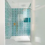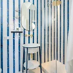 I badrummet finns även en bidé, en separat toalett och en dusch. Det finns också badlakan, handdukar och tofflor för gästernas komfort.